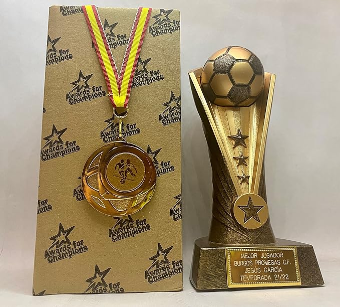 En resumen, si estás buscando un regalo único y significativo para reconocer los logros en el fútbol, nuestros trofeos de fútbol grabados, incluyendo el Balón de Oro, son la elección perfecta. Cada trofeo viene con una medalla de oro como regalo adicional, lo que lo convierte en un premio completo y memorable. ¡No esperes más y honra a los mejores jugadores con estos increíbles trofeos!